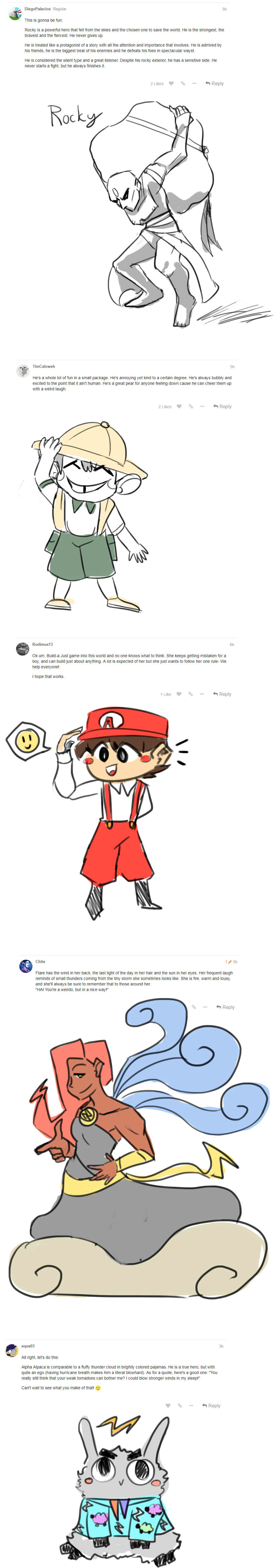 Hello! A while back I played this pictionary esque game with some of the people on Tapas: https://forums.tapas.io/t/let-me-draw-your-characters-closed/29798