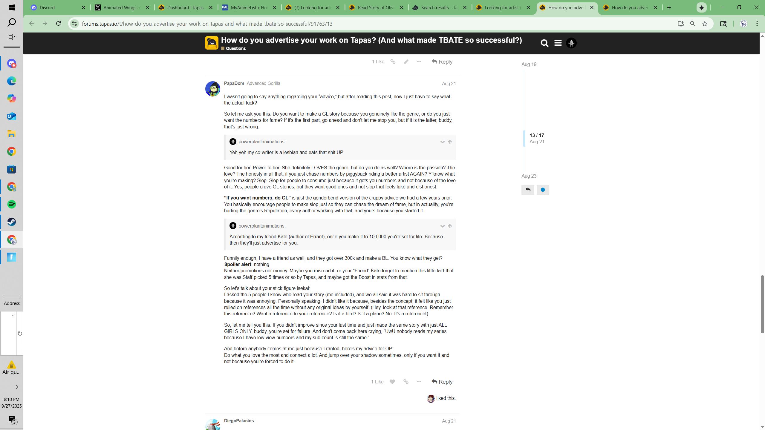 I didn't even come across this. "Good for her, Power to her, She definitely LOVES the genre, but do you do as well? Where is the passion? The love? The honesty in all that, if you just chase numbers by piggyback riding a better artist AGAIN? Y'know what you're making? Slop. Slop for people to consume just because it gets you numbers and not because of the love of it. Yes, people crave GL stories, but they want good ones and not slop that feels fake and dishonest."