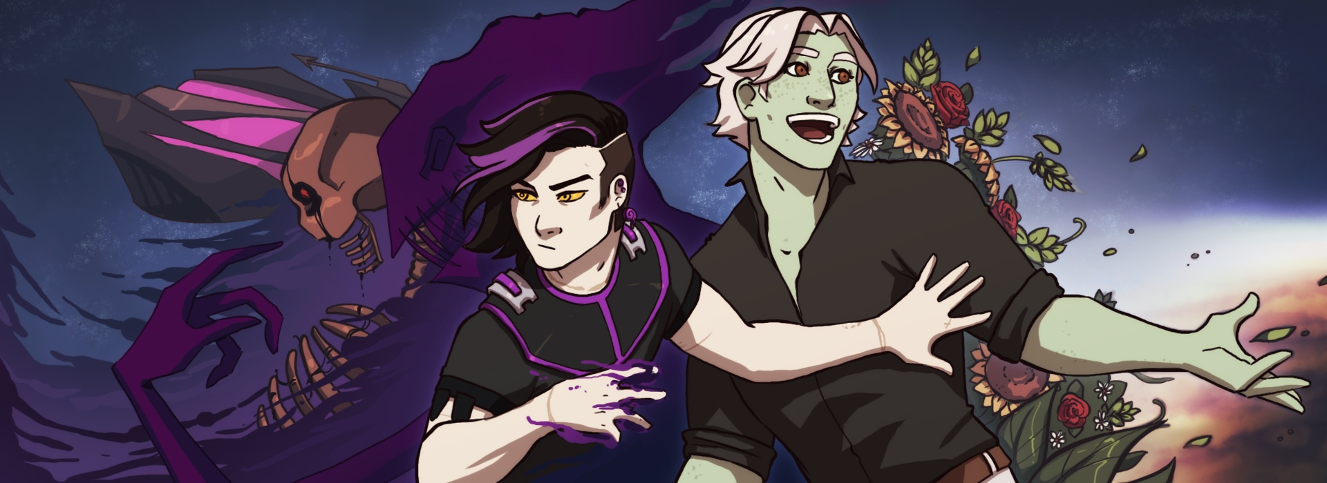 Slow burn sci-fi romance. Luzio, a trans man, is in a very slow burn romance with his first mate Sage, a pansexual cutie-pie. They're joined by a host of wonderful background characters, including additional mlm relationships and trans characters.
