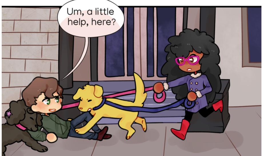 I absolutely adore your comic plot-wise. Your characters are full of personality and you waste no time on unnecessary exposition and keep things moving! It’s easy to follow, you should be proud of yourself! Give you a pat on the back! I love Renee’s shy yet quirky vibe! (Also the dogs are ADORABLE! But so are the characters!!~~<3) Also you did great on all of them. Yes, the guy is only there for one chapter but you managed to make him--and all of them, memorable!