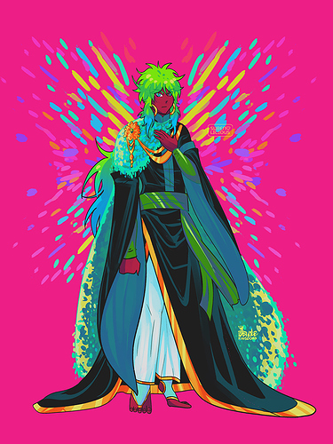 @Liacanthe uhh pretty cool and unique style. love all of it. colors, eyes <3 and the whole drawing style