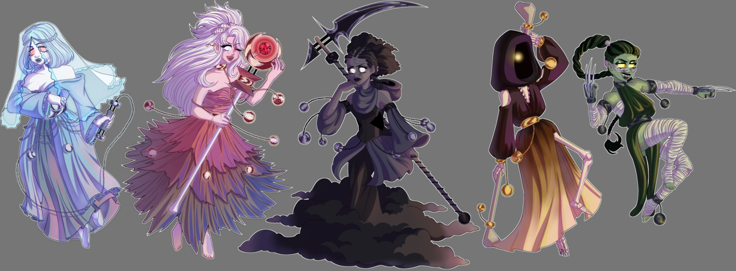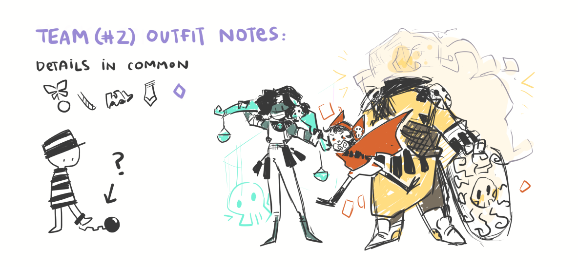 Initially when I was making this team, I want to stay on the creepier side of things, but this time around I realized either is fine, and that it doesn't really matter the direction I go in. The styles are different and the newer version is just a sketch. If you want to know more about the story, I am linking some previous posts. Just know that outside of what I've posted here and a general outline, there's really not much content