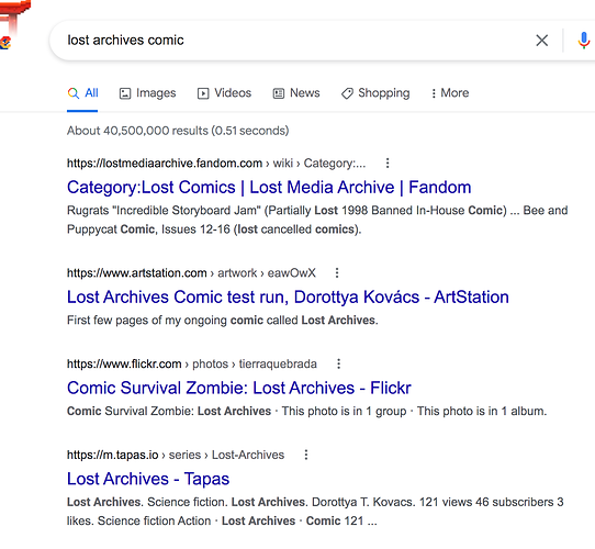 Another funny thing is that ‘Lost to the Archives’ which is also a tapas comic somehow shows up with similar naming but mine doesn’t while being the exact match to my searched words.