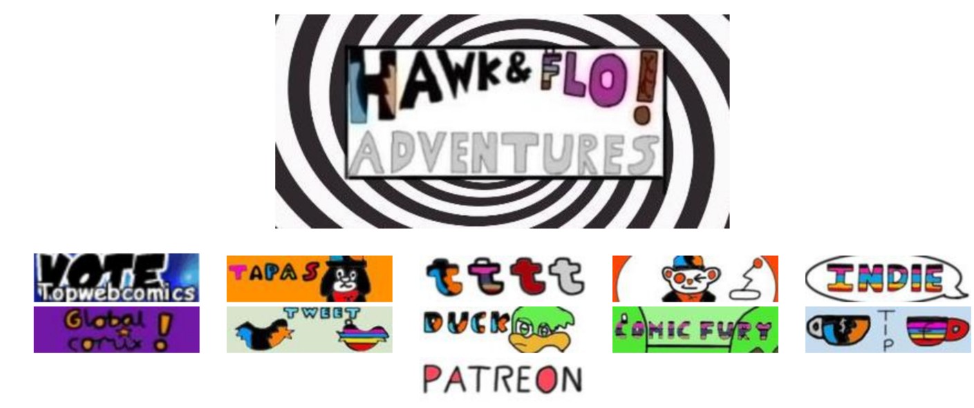 Stuff like this is a big reason why I feel in this day and age you need to have a Duck or a Comic Fury or in cases both. Cross over promoting your site mirrors is very easy to do on those sites and it makes it easier to grow everywhere. Readerships are like a river they need to flow and you'll get a bigger lake if more rivers can run into it. On Tapas and Global I sadly don't have the epic Hawk and Flo themed site buttons so I use this page on most of my chapters instead.