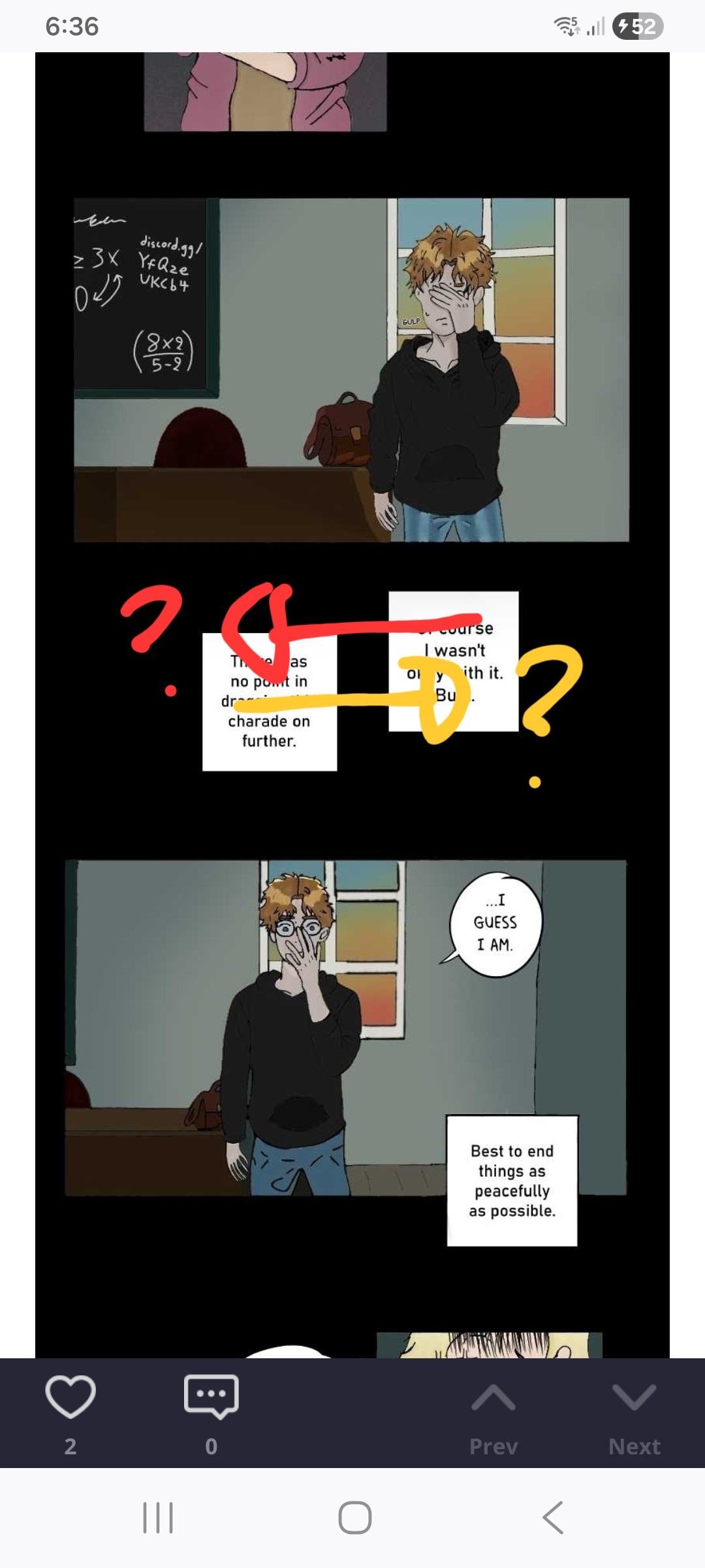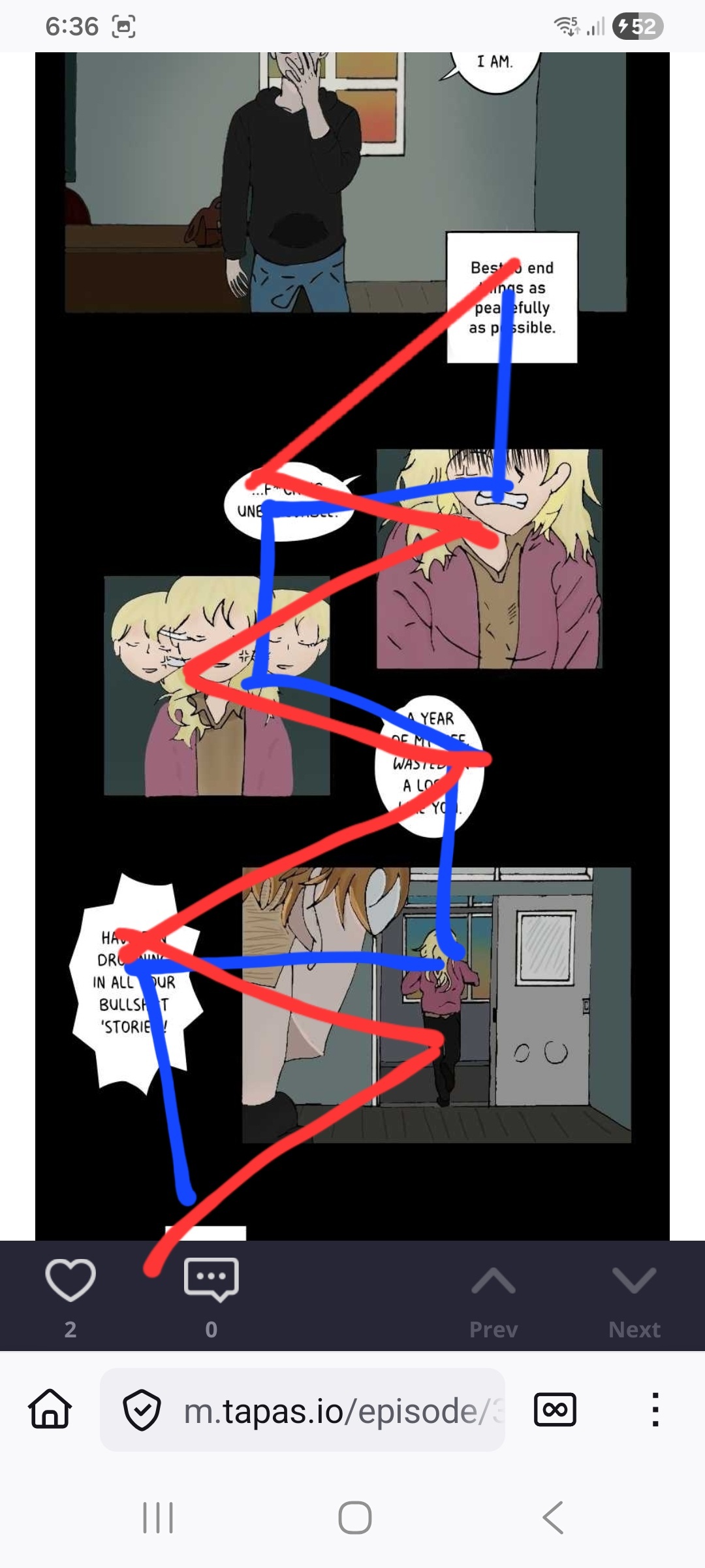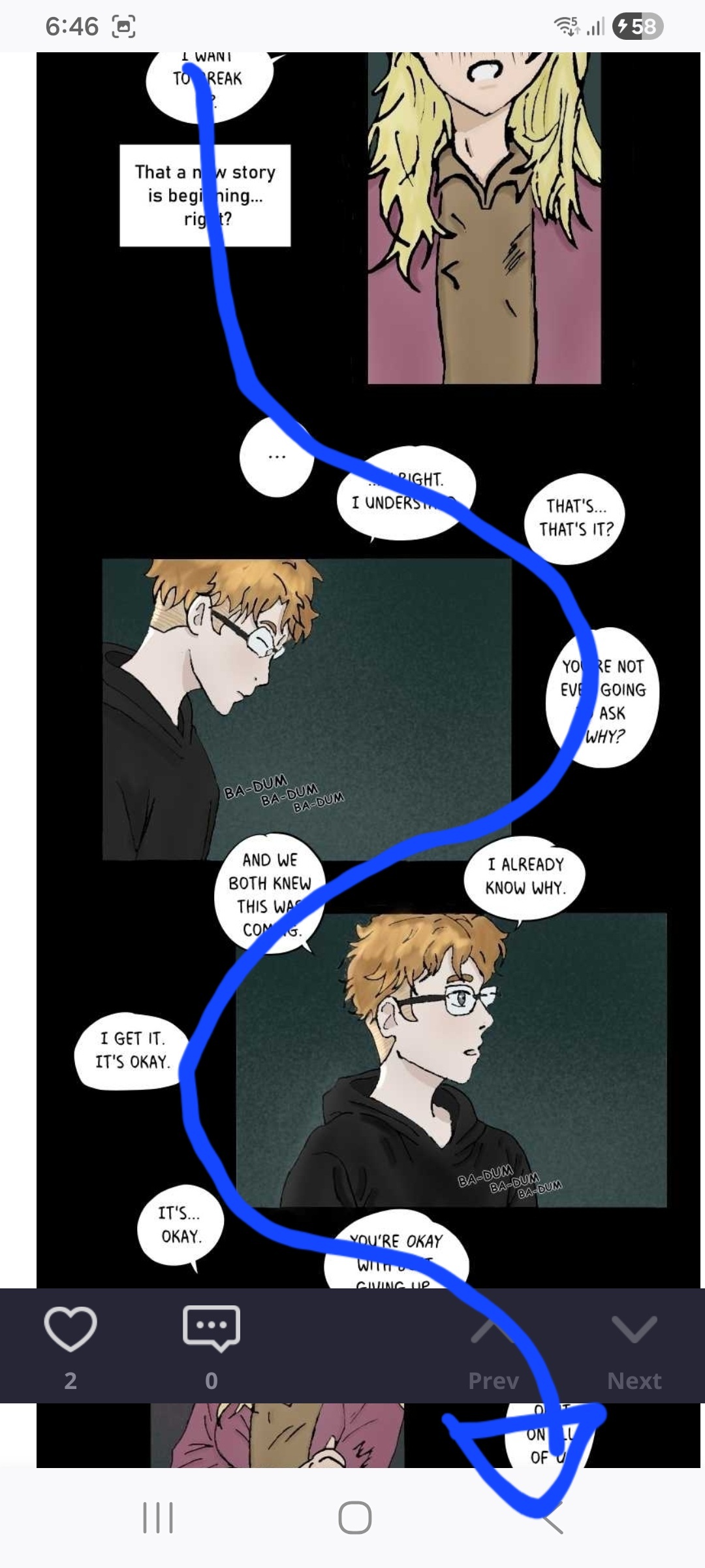 For this one, just a little nitpick of mine, so other people might not have trouble with it. But the there's two ways of reading these panels, and both doesn't feel good in my eyes.