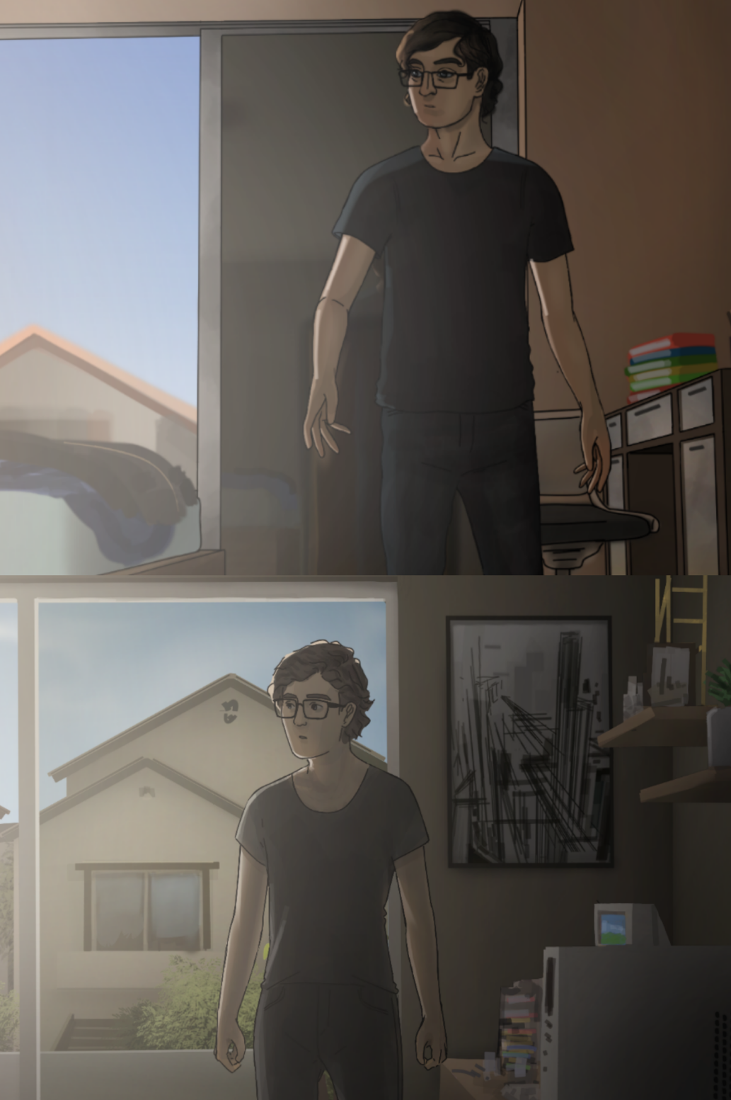 and this is something that i still think of, because actually Tom design came from another story i wanted to do, it was or it's called "Vodoo", Voodoo has a whole different story, has nothing to do with this one, but it had a similar concept, a guy who was shy, failed in love, but this story involved ghost and scary things ļ¼ć_ļ½) the design is similar, messy hair, glasses and a black jacket. Maybe someday i do this one, but i think is the least planned story i have.