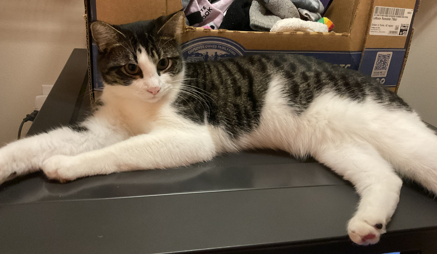 Murphy. The first year my husband Troy and I were together we visited his mother in Yarmouth, Nova Scotia (about a three hour drive away). While we were there we observed some teenage children tormenting this kitten. They were trying to throw her over a chain link fence. I stopped the car, Troy jumped out and put the fear of God into those kids, and we took Murph home with us, and there she stayed. She eventually went deaf, then senile. She passed away in 2019 at the age of twenty.