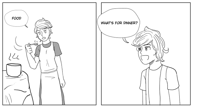 My comic don't use dialogue much but my two main characters have a lot of fun little interactions XD