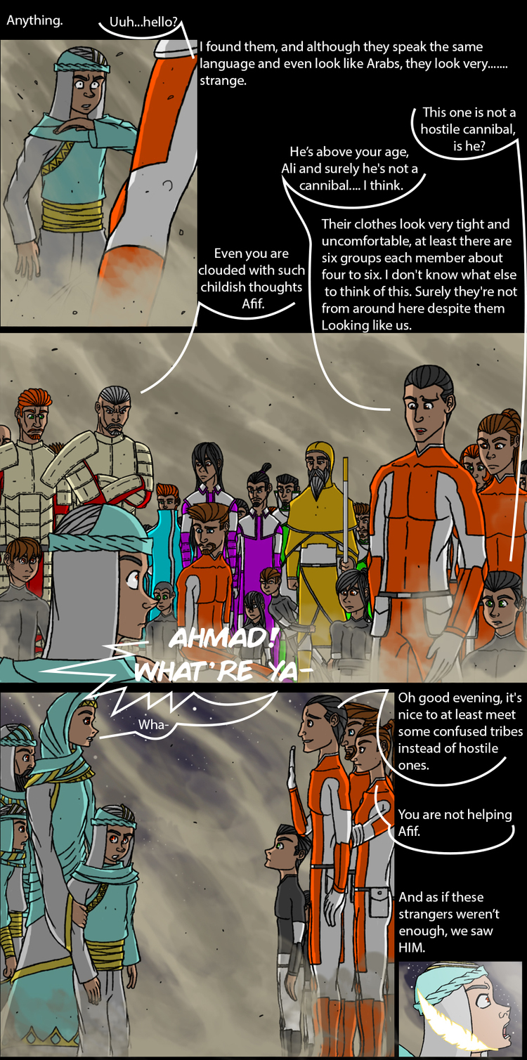 Although not a funny exchange between two characters, but an interaction between two groups; the tribes and the science-fictional looking characters.