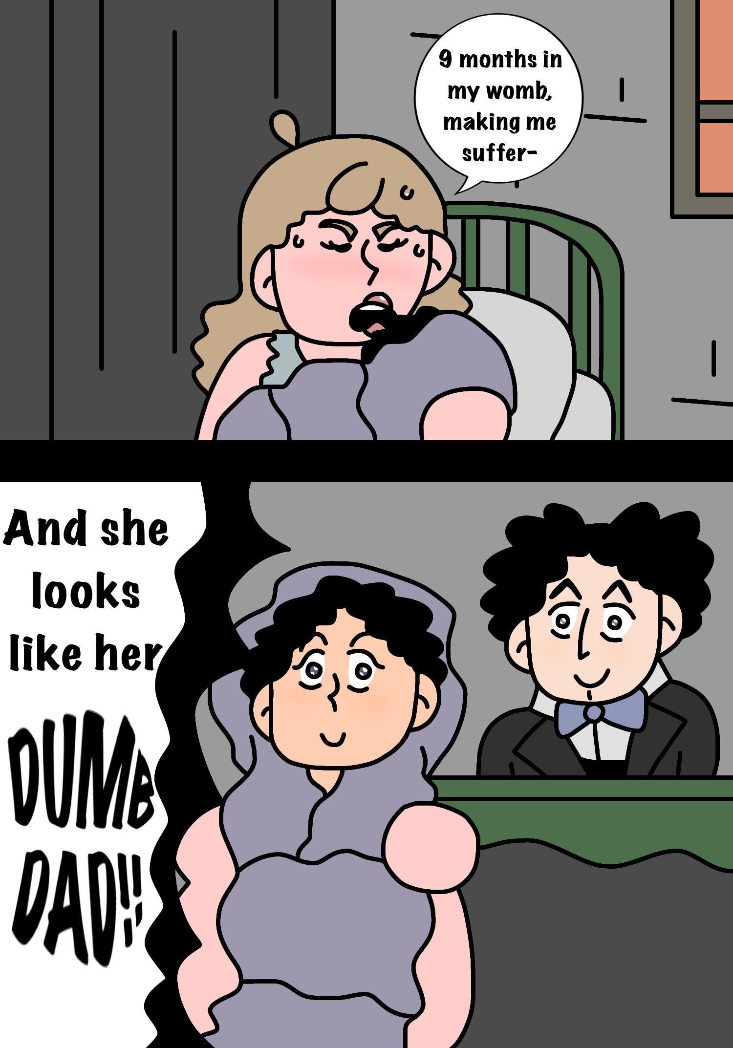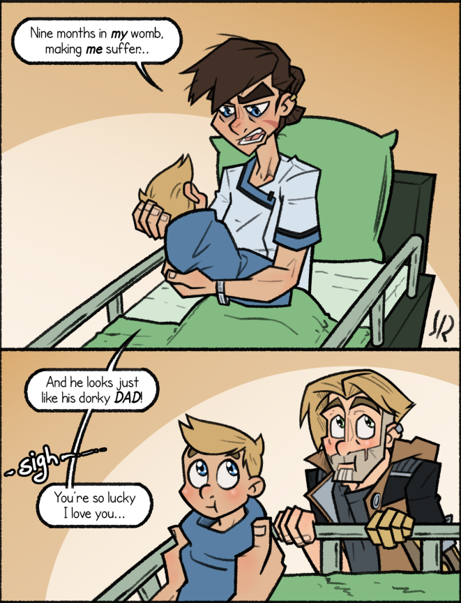 Meme'd the adult versions of my characters again. This time shortly after the birth of their gremlin of a son.