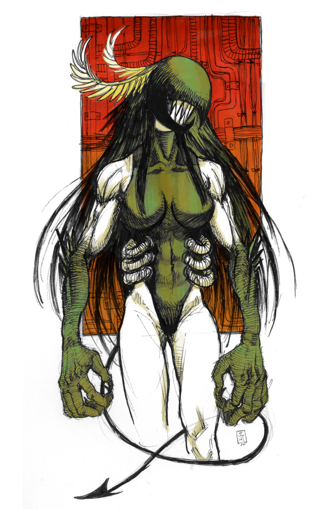 Most of my sadly limited creative time (poppa gotta keep a roof over his head) has been spent completing at least four or five months worth of script before drawing the thing and posting it up. Scripts don't make for interesting visuals so every couple of weeks I push myself to draw something... anything... to keep my fingers limber and my Mastodon and DeviantArt accounts alive.