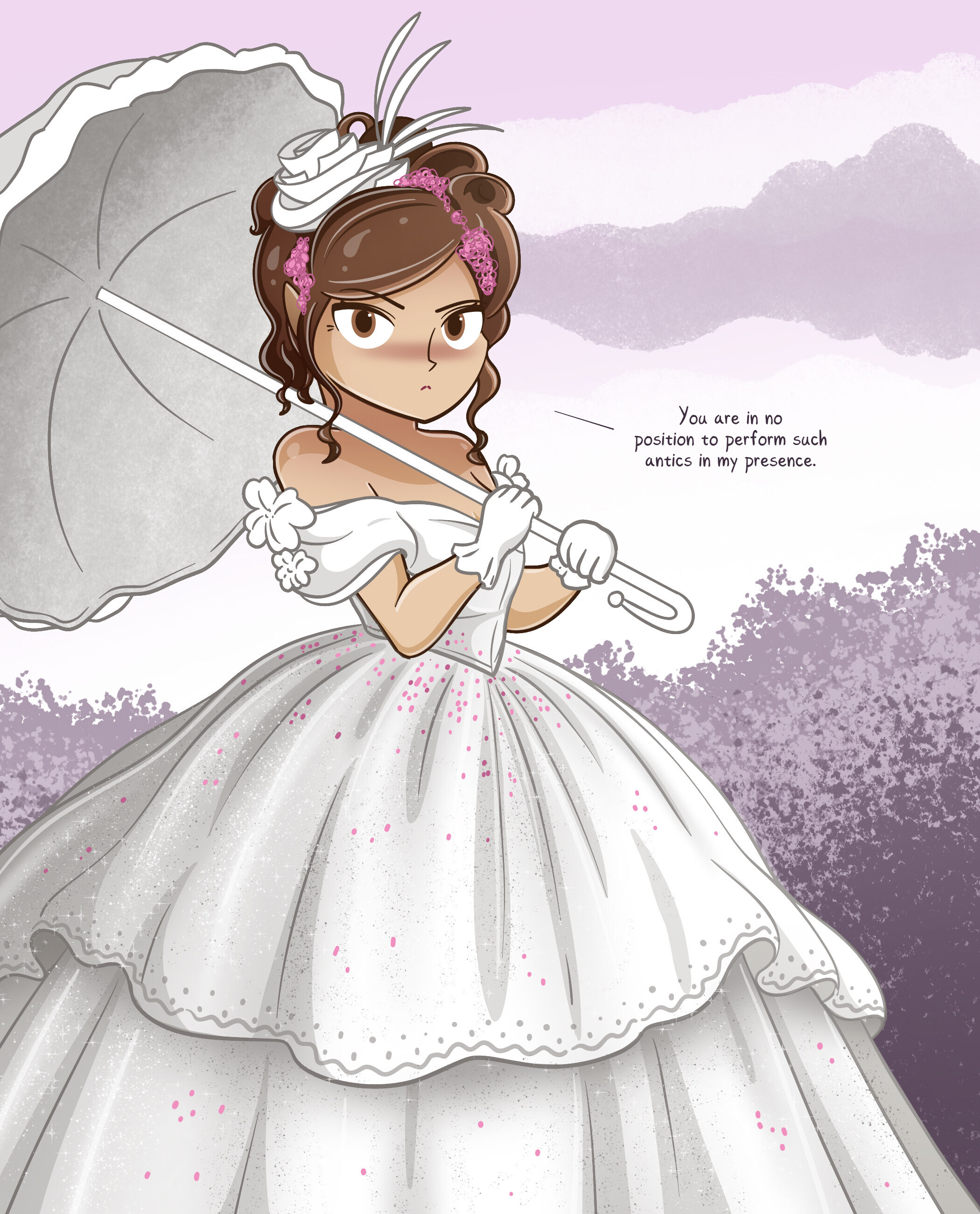 From the latest page of my webcomic, Outcasts! I had SO MUCH FUN drawing Grace with her upperclass outfit and her CANON water wings!!! (Also, yes, it took forever to draw...but SO FREAKIN' WORTH IT!!! <3)