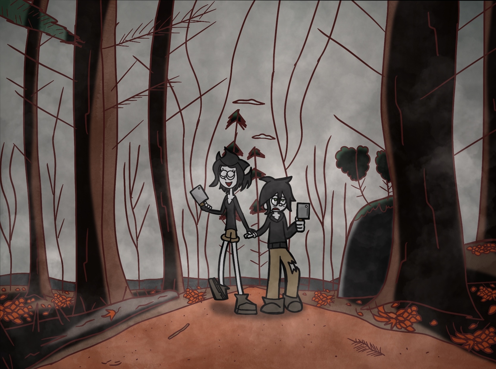 Inktober today was murky, and rather than just doing a swamp like most other probably have did, I drew Lolly getting a cruel reminder that she is a ghost wearing her own corpse