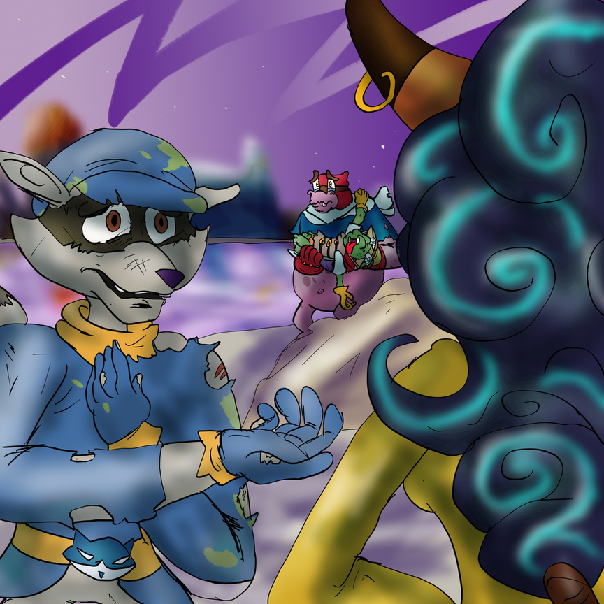 Inktober today was "deal" so I drew Sly's deal with Carmelita at the end of Sly 2 to let the Murray and Bentley free if he went with her with no fuss