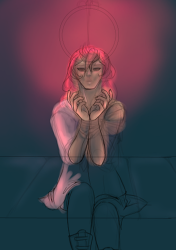 Struggling with the composition here but I think I'll finish this atleast before Monday and continue whats gonna be left of it after I made some non-personal artwork orz. Would be late for the said prompt tho </3