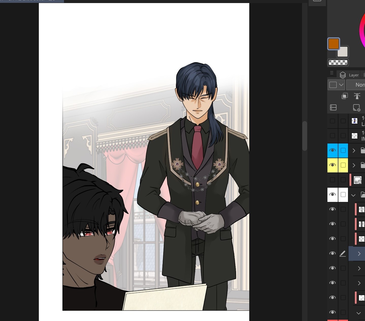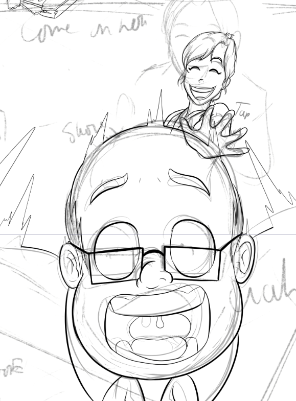 This is one of the panels I'm drawing. Of course, the dialogue in the comic is not like what's in this image.