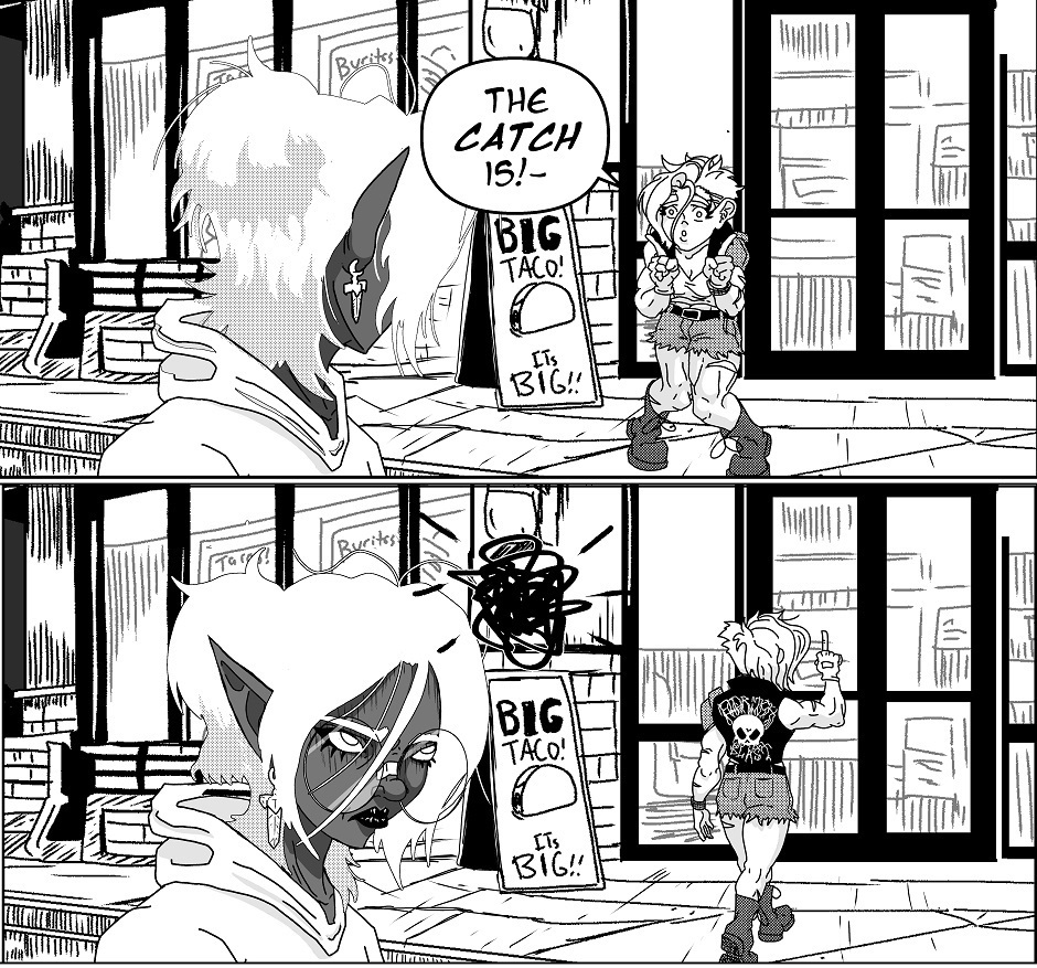 Randy is a tall gangly beanpole. She has the opposite build of Ragna. As the magic user of the three she also has next to no muscle. Randy's facial features are all from her being a fish-girl (no nose, big shiny black eyes, fin ears).