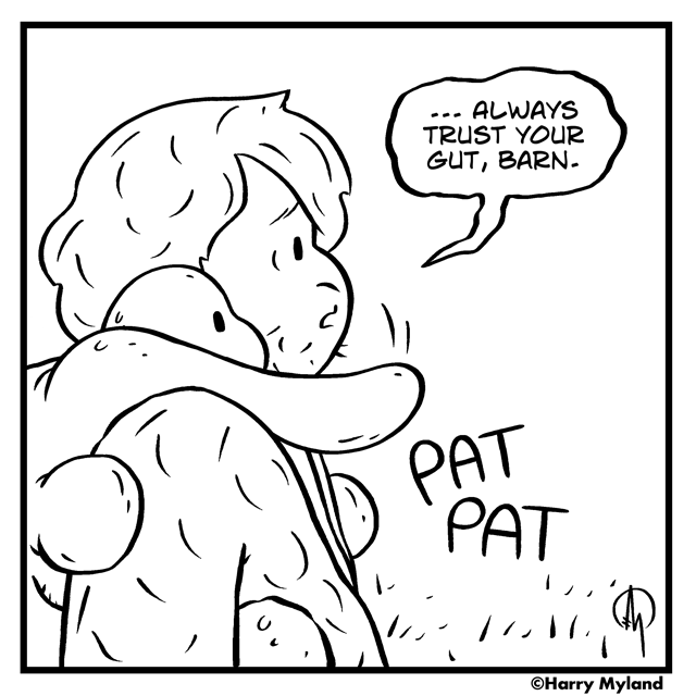 I wrote - but never drew - a story about space barnacles. The idea was they start off as mindless little creatures and slowly become sentient - and a problem! - if they aren't dealt with when they're young. Barney's already past that stage, so am I insinuating he may become a problem??