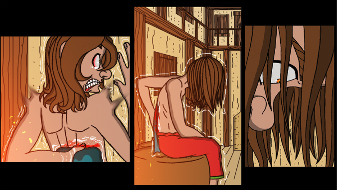 The next day he woke up, he had a sudden pain in his back and began to check it on the mirror, His wounds are getting worse but he still keeps it to himself: