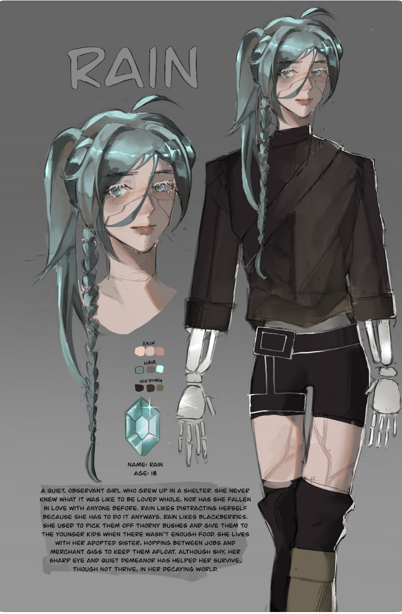 Shine, a zombie like creature ravages the earth, filling the air with the smell of the dead and dying. Far away, atop the tallest safe house, River, along many others is executed by Ace, the once beloved leader now on the brink of insanity. As the screams faded and the taste of blood drained from her mouth, River found herself in a strange, new timeline——back when Ace was still the beloved leader that saved her all those years ago. Venturing back to her childhood home, she meets Rain, a runaway who grew up in an orphanage that now lives in her previous home. Together, they work their way up the ranks, seeking to stop Ace before it’s too late. But day by day, River’s body disappears, and the duo only has so much time before River fades undo her own timeline for good. Strangers, connected by an unseen past——fighting together to save a decaying world. Secrets and conspiracy riddles every corner, threatening to dismantle the life River and Rain thought they knew.