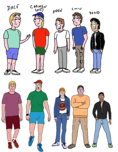 The top row shows my original character concepts for Wild Nights, Hot and Crazy days. This was literally the first drawing that I did when I got my new Surface Pro 8. It was also the first drawing I'd done in 25 years, and I was still using the style I had used in high school.