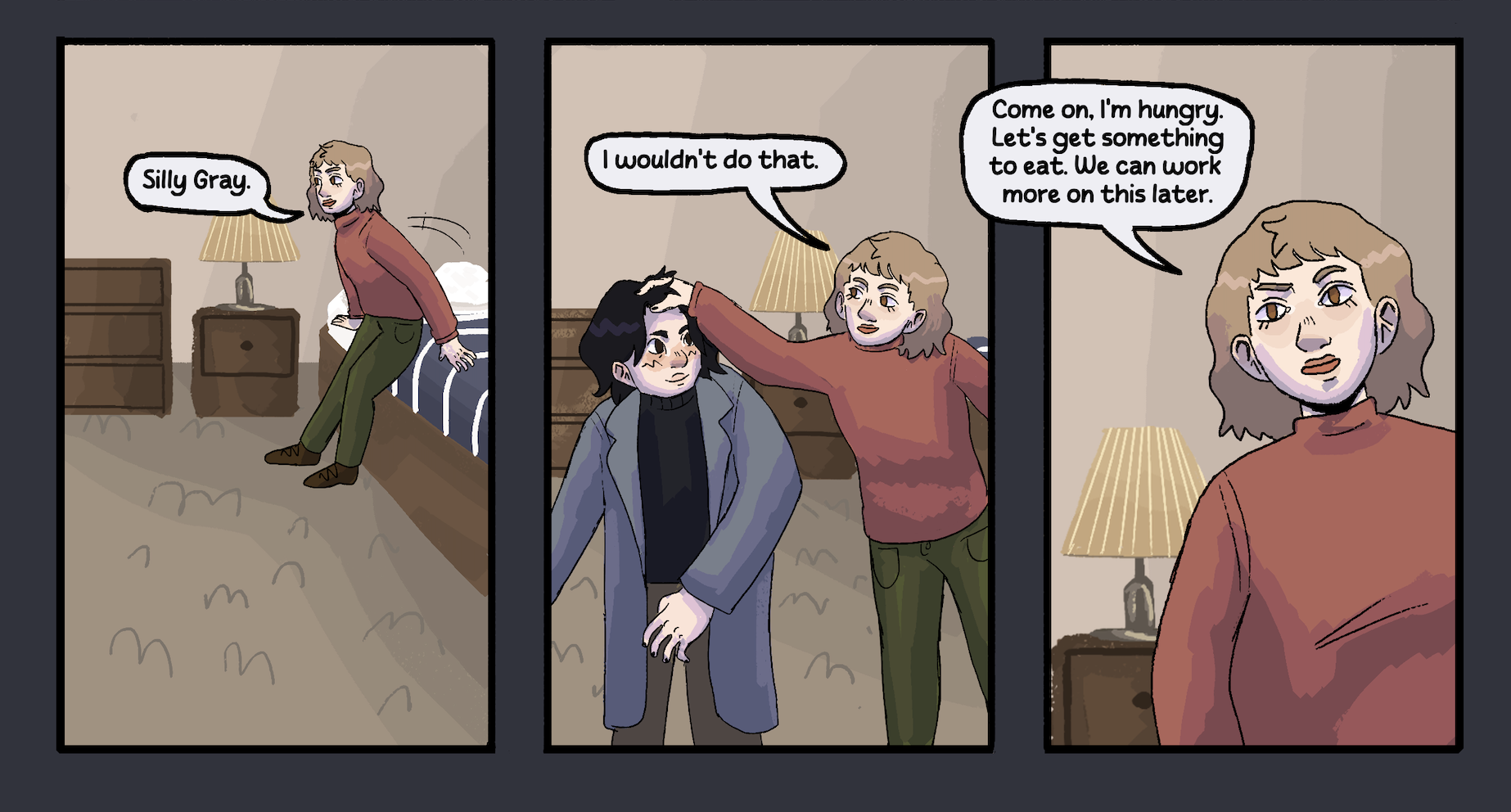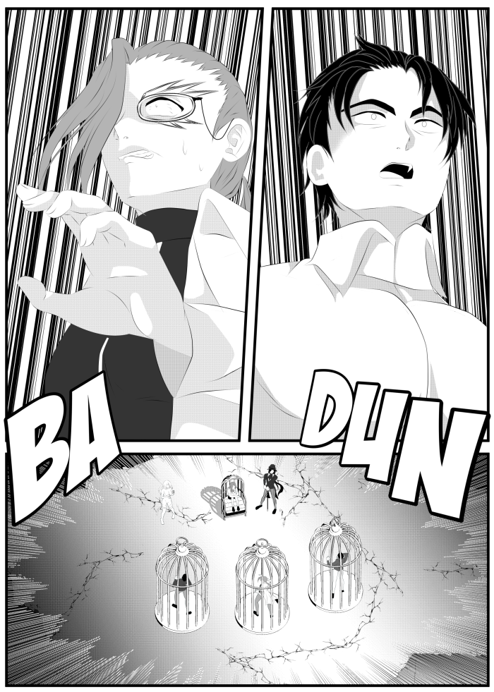 The last panel I drew kinda bleeds into it's previous panels, so I'll just show the whole page.