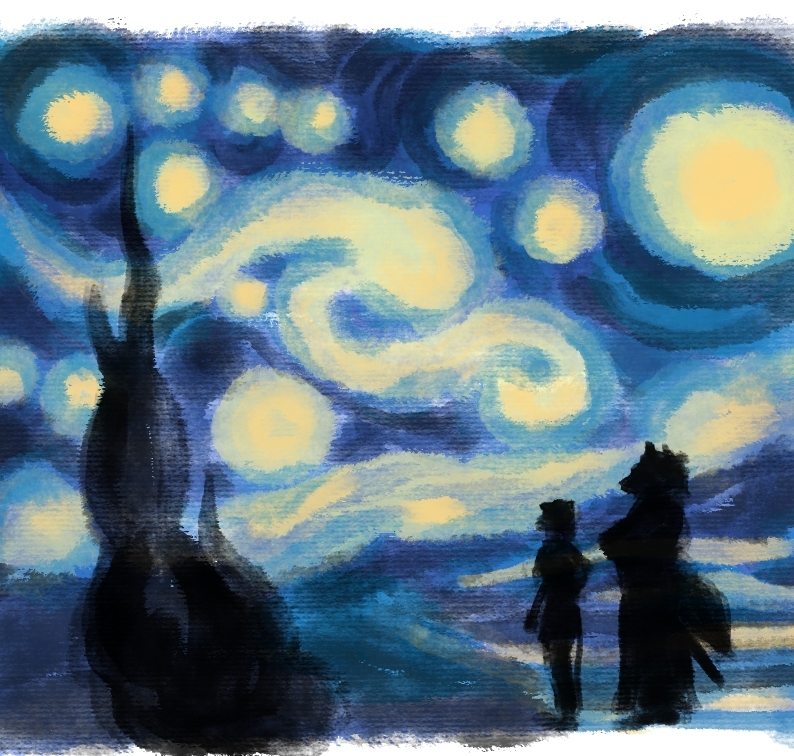 Plagiarism... uh... I mean, paying homage to Van Gogh's "Starry Night".