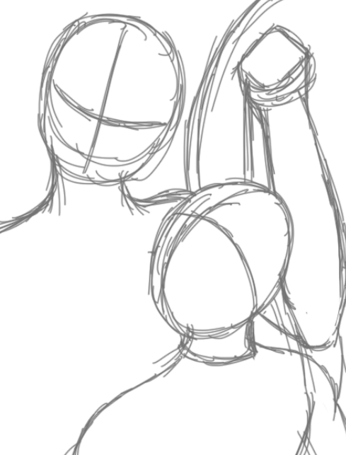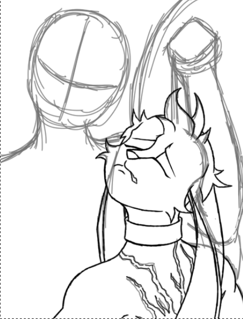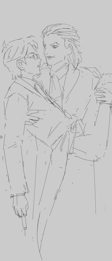 Then... I know this is jumping ahead quite a bit. But after sketching out the characters, I start painting directly, adjusting as I go. Most of my colored illustrations don't have a "line art layer." I typically use only one layer per character, at most using a second layer for small, trivial accessories.