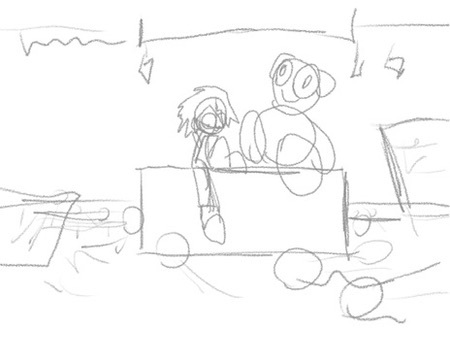 Then I roughly outline the characters.