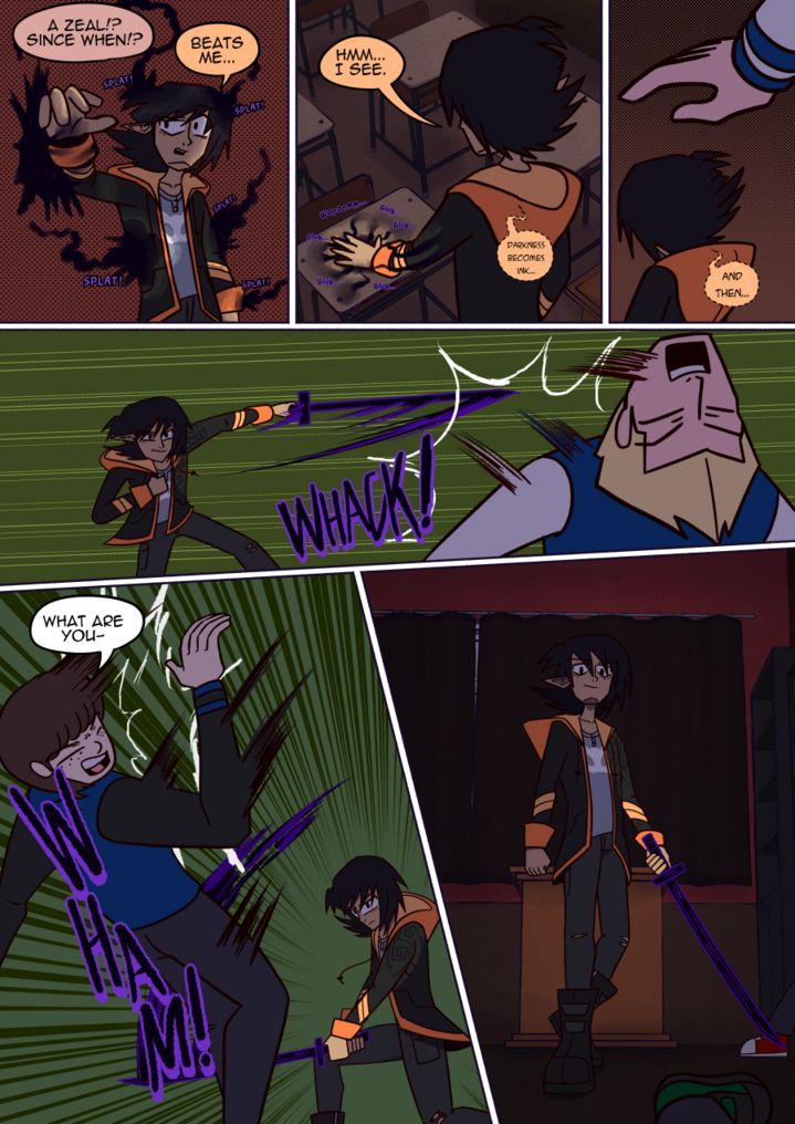 Behold, a wooden katana made by absorbing shadows! No real katanas because Nat's not THAT insane as to slice down an average bully.