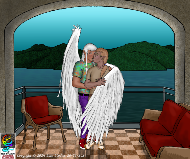 For Defining Daecon it would be Daecon himself. This is because among the shapeshifters he is the only one that can form human/animal hybrids such as shown here in his human/eagle form. Don't mind the fact that he is snuggling with Evander. He is always snuggling with Evander.
