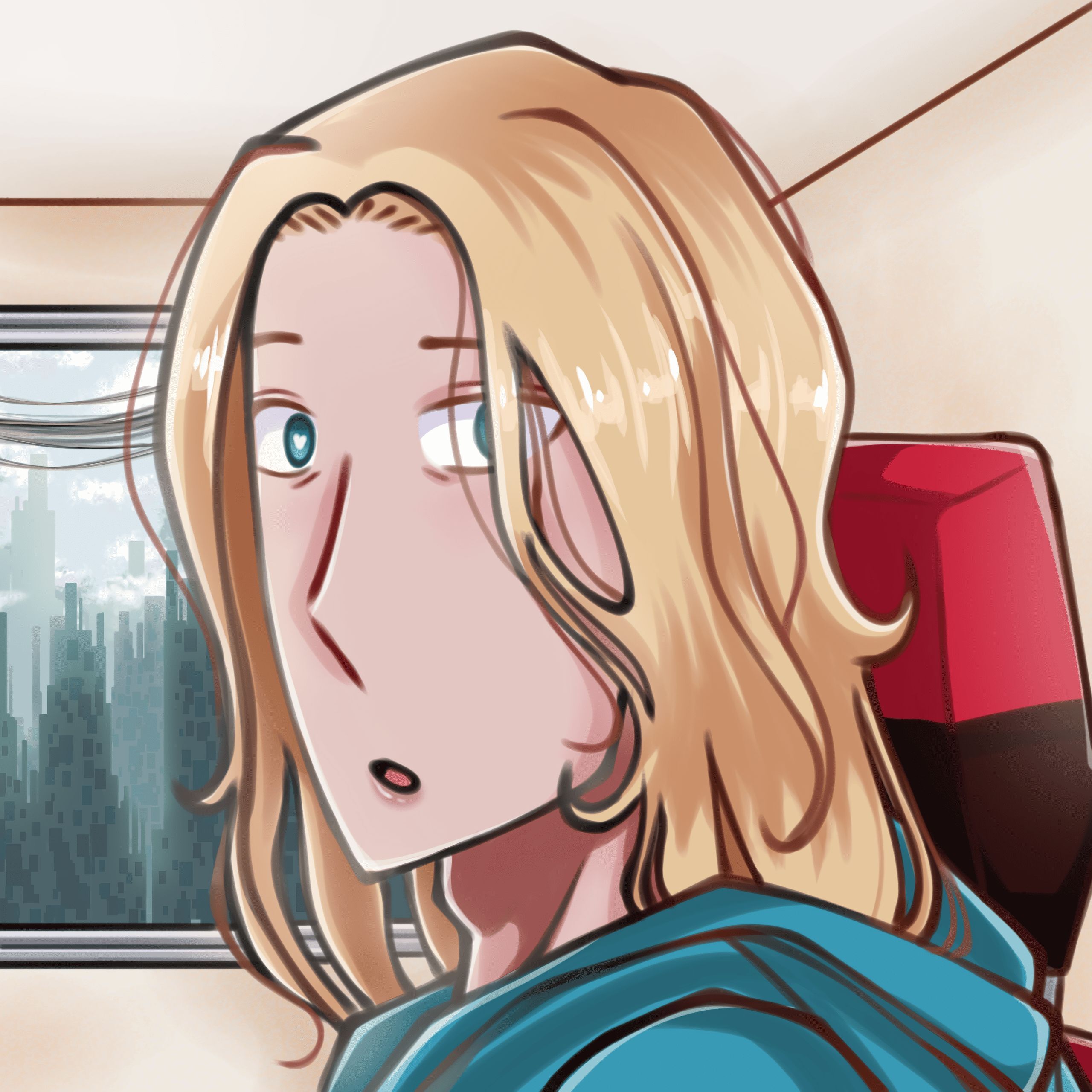 And then an establishing shot of the HQ city of my protags! Backgrounds are always super hard for me so it's rare for me to like a landscape shot