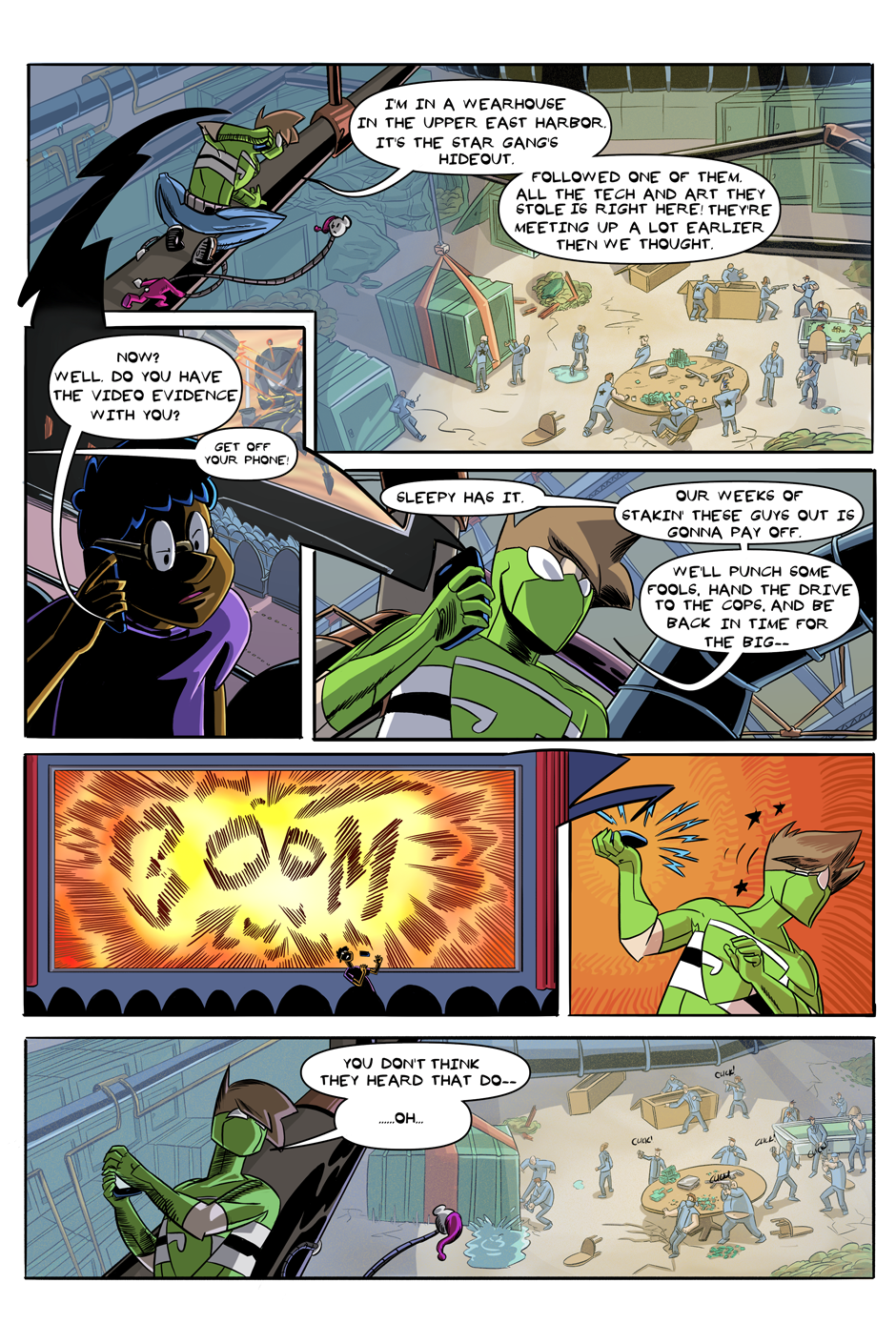 This is page 2 of the 'Movie Night" short, which shows both the M.E.A. Movie Theater and a warehouse by the docks where the Star Gang is meeting.