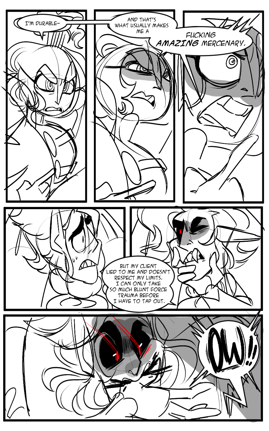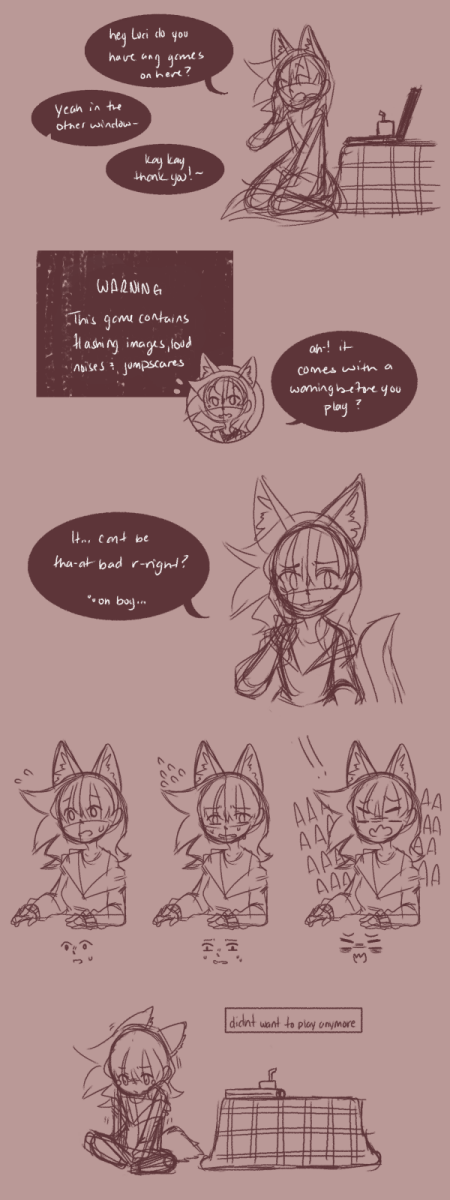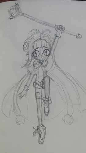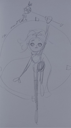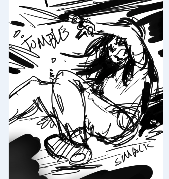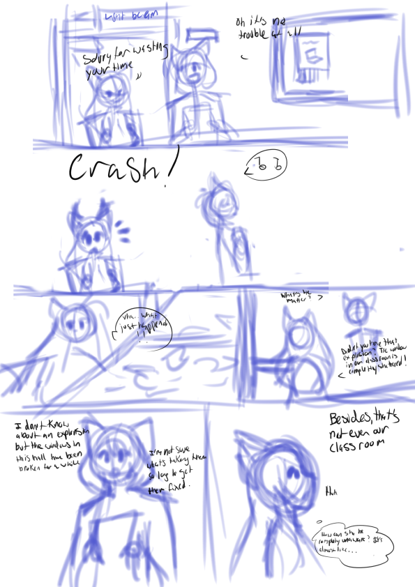 Most of the time, my rough sketches look like barely constructed outlines with hints at potential facial expressions. I end up going over my rough outline with a less rough outline (if that makes any sense) before finally finishing with the actual line art.