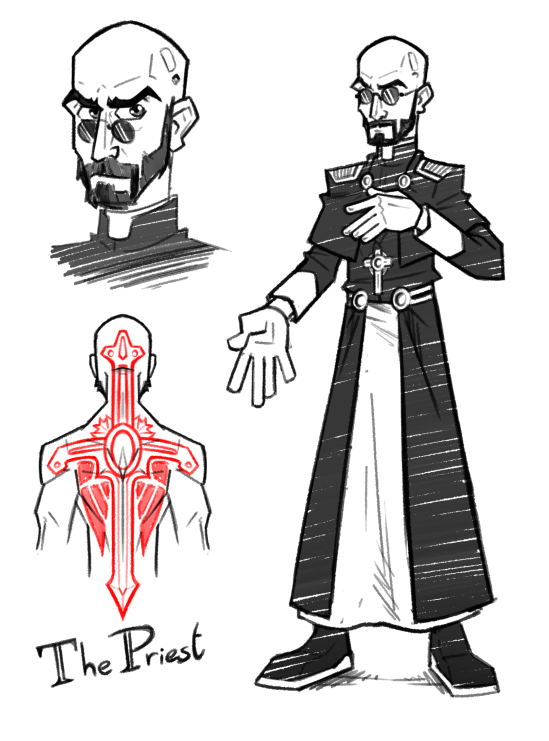 Had an old character-idea (the 2d sketch) that got reused as him, for when he re-appears in series. Updated his look for that moment. His powers and aesthetic reflects the more creepy elements of the series.