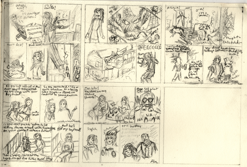 Here's an example of a page thumb, I usually draw several of these on the same sheet of paper to form a chapter: