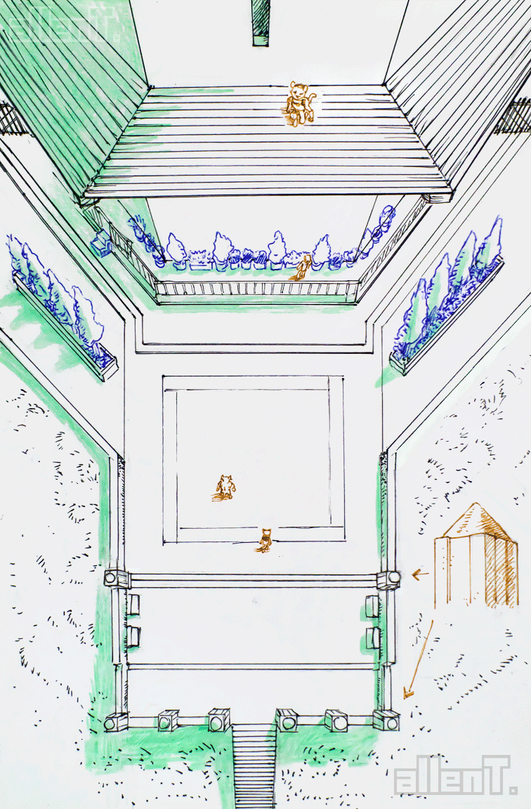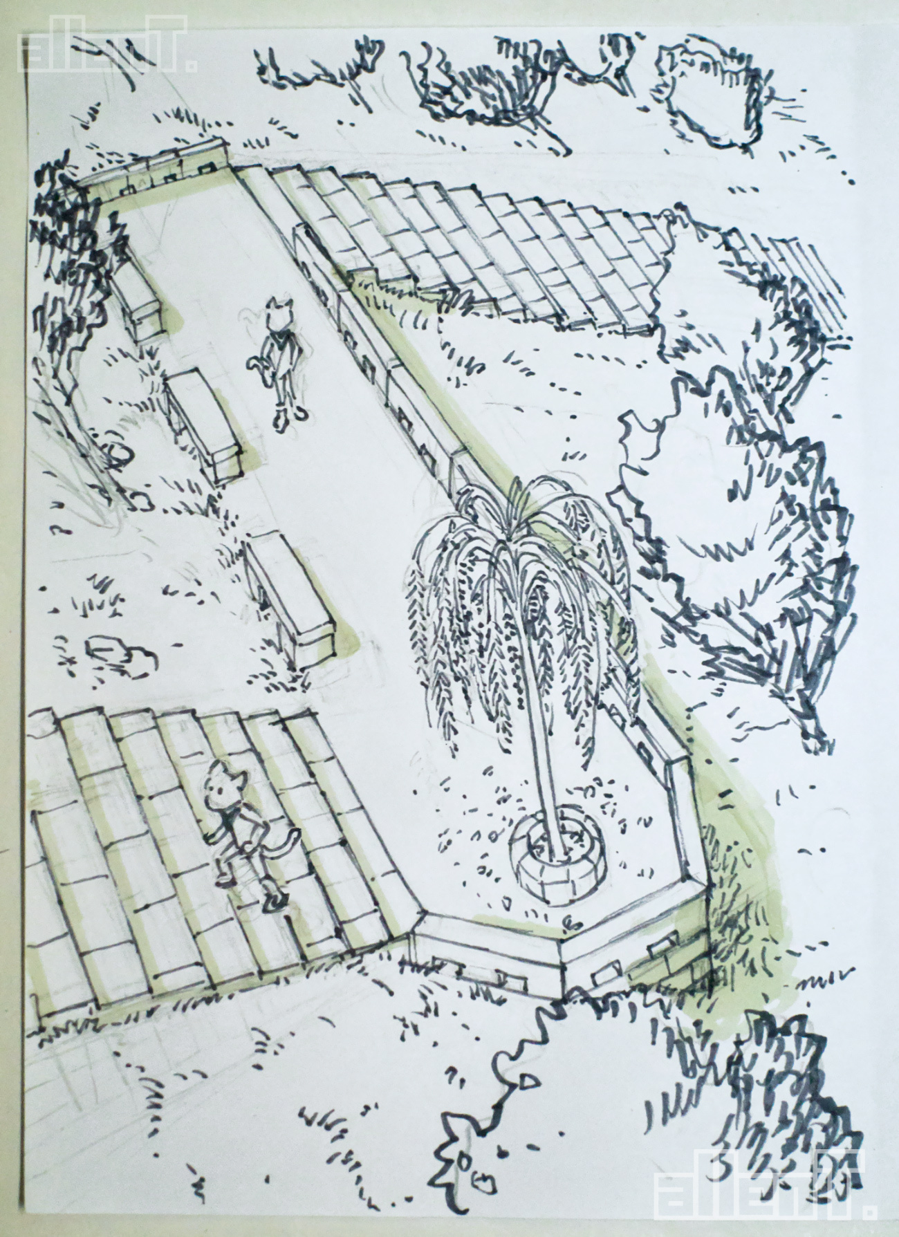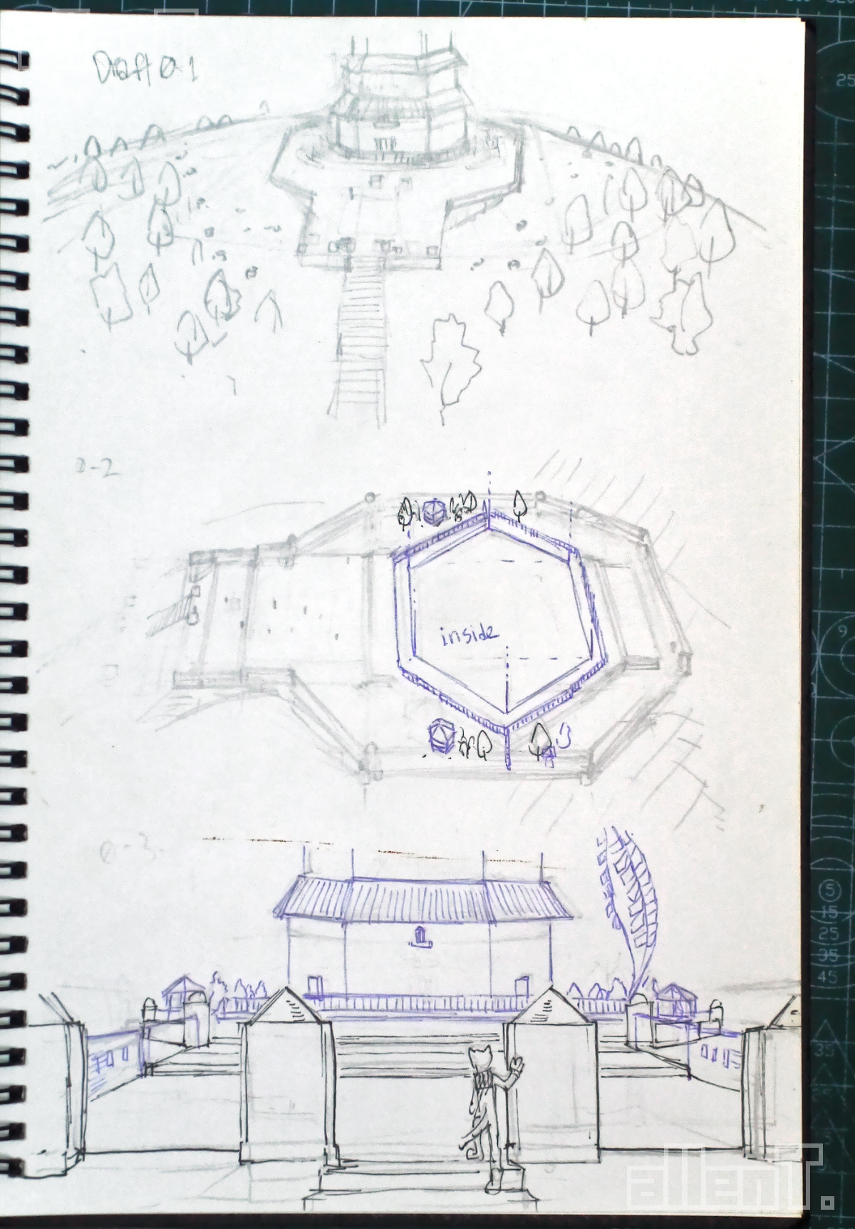 Designed a rest point mid-way on the lump hill towards the pagoda. (might use on comic or not)