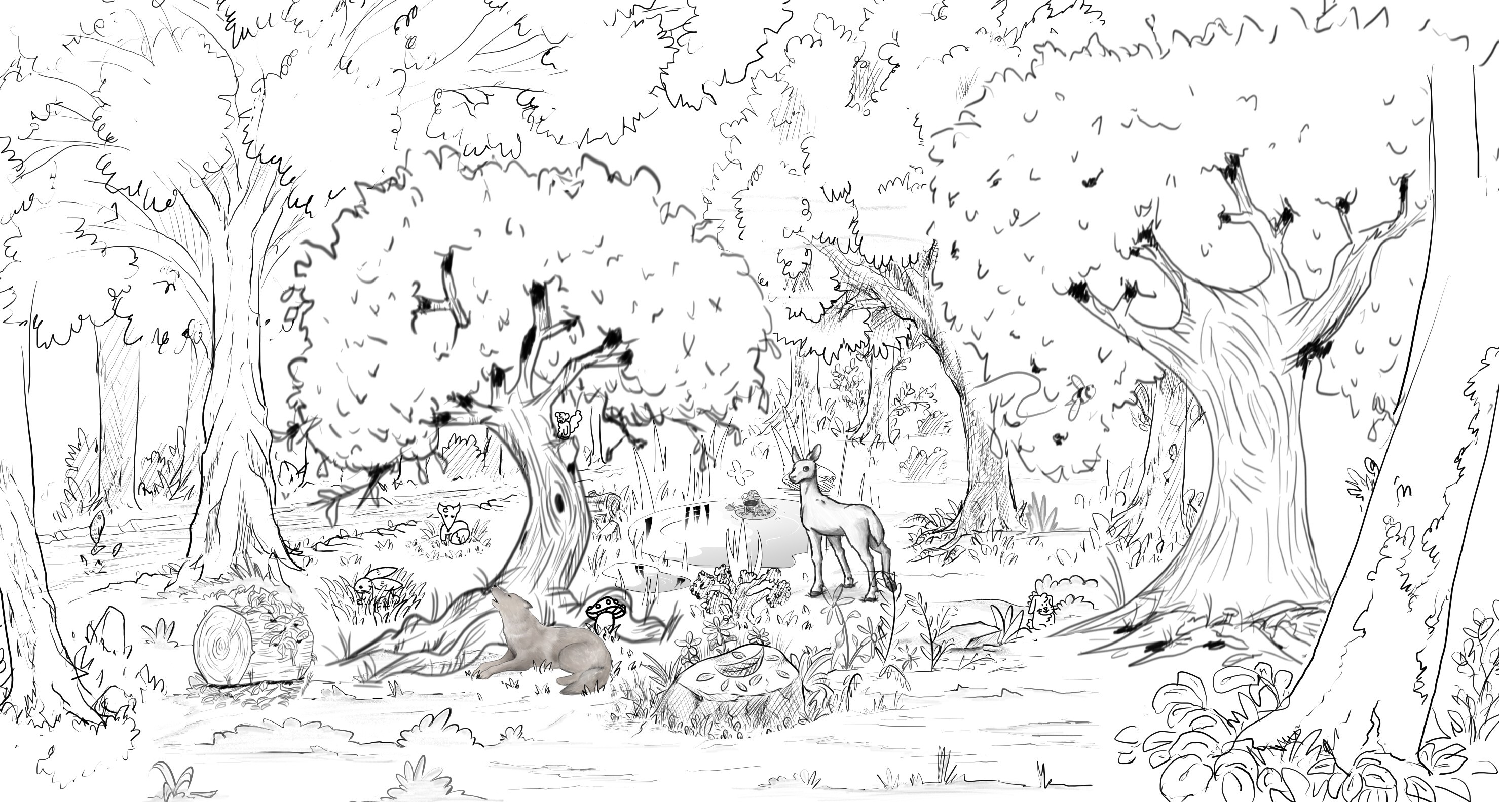 i was kinda experimenting around how terrain would look like with different hand drawn forest elements as drawn above and one with pre built brushes in software