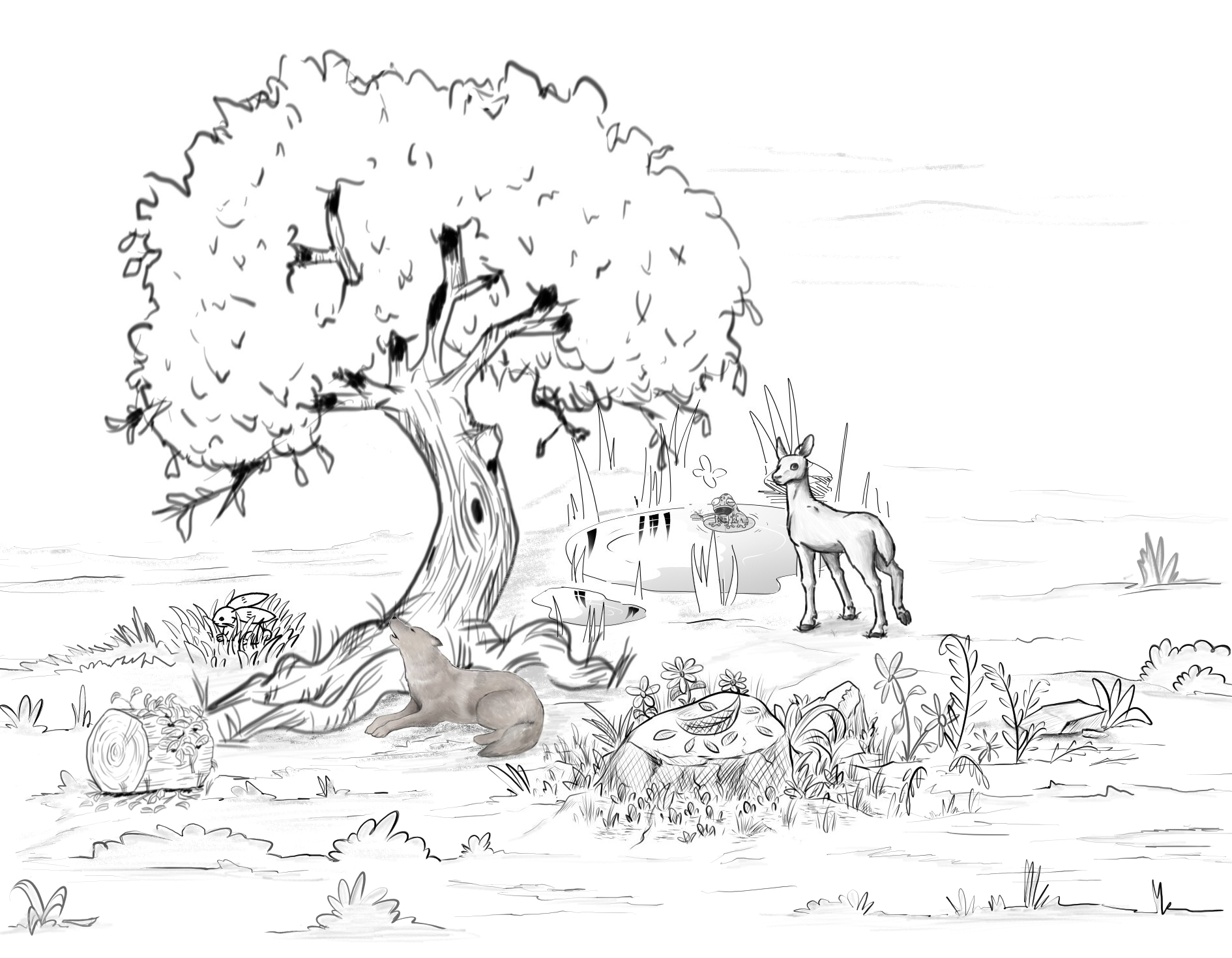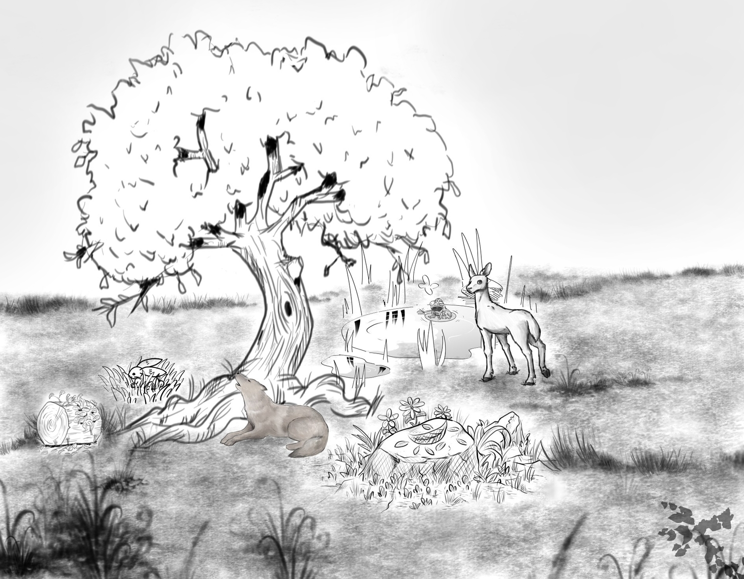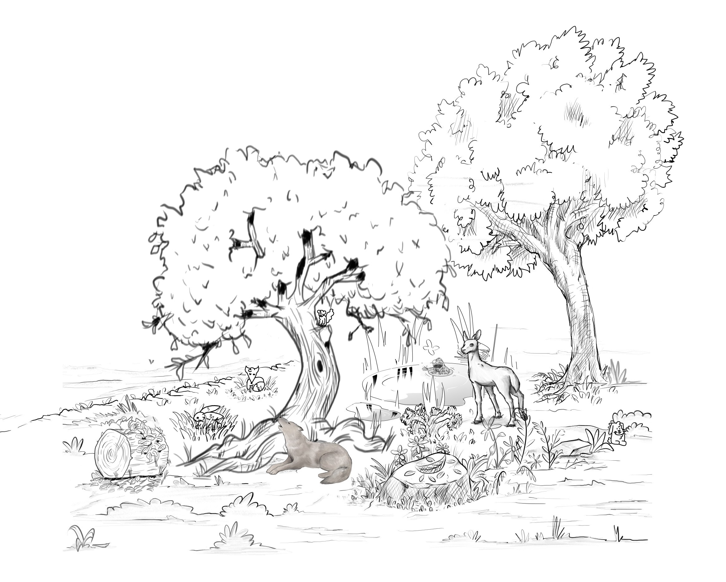 Hmm, clouds would be a hard fit, check the perpective of the pool with the frog, ithe angle is quite high, more like a bird view.Here's an update, needs more trees to look like a forest, or it'll remain a savanna