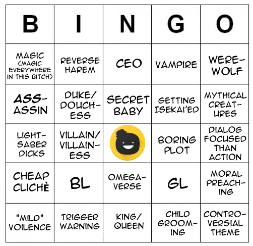 So if you can take a jab at yourself, use the bingo card and pick the common themes that fit your series and have fun!
