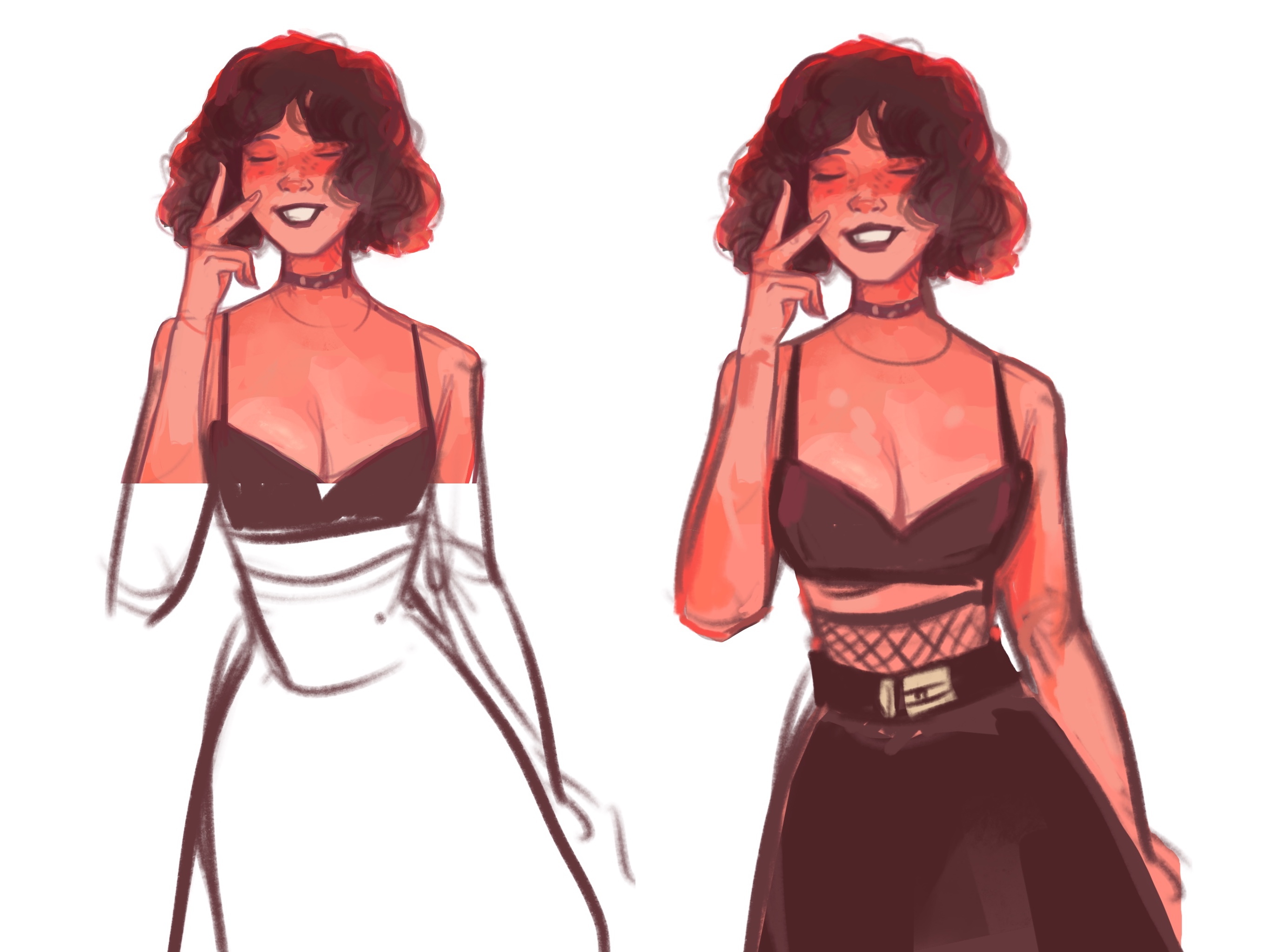 Finally we zoom out to do the rest of the body. I don’t have much to add to this, since it went by pretty quick. Once I got her expression right, I didn’t feel like spending too much time on the other details.