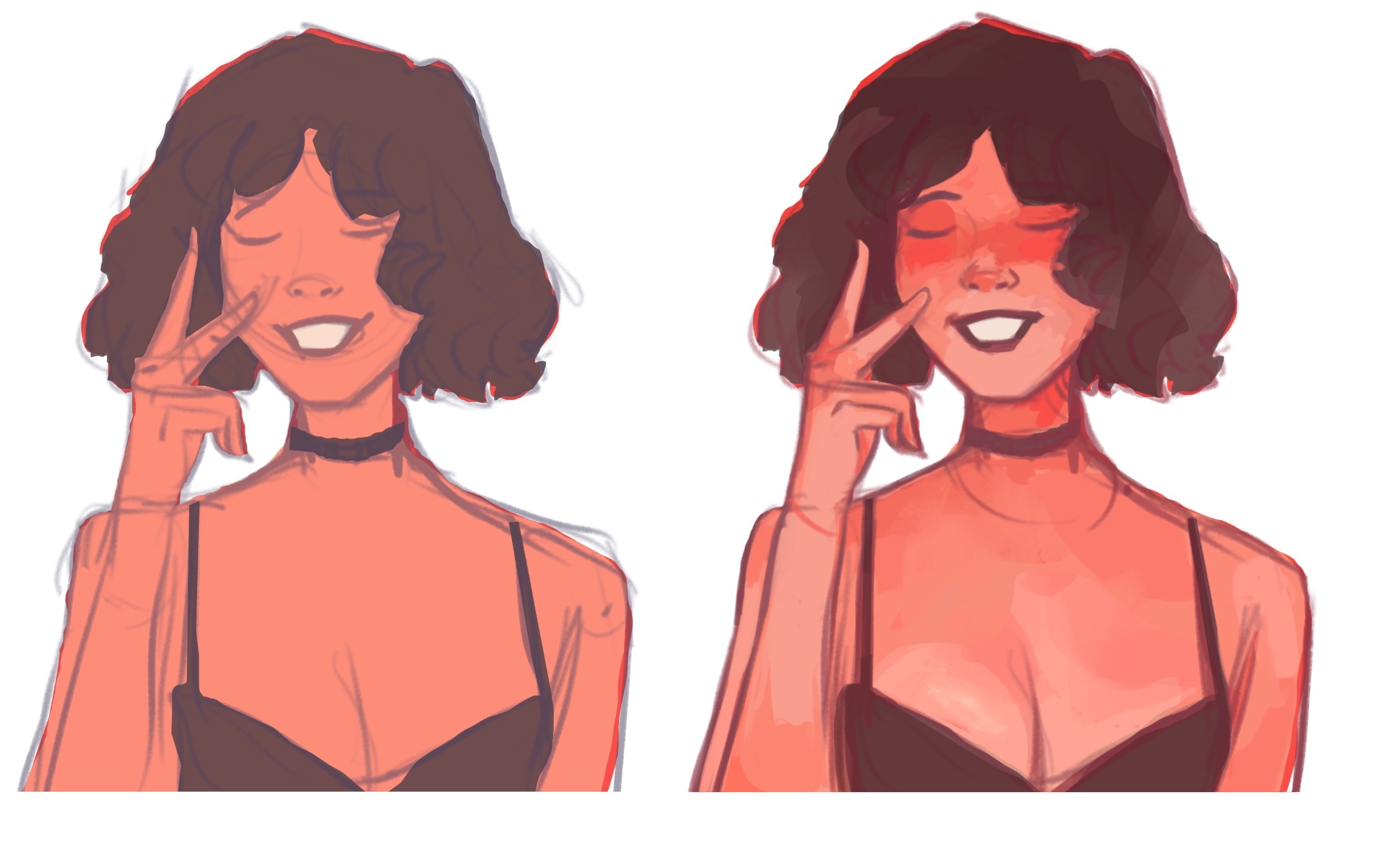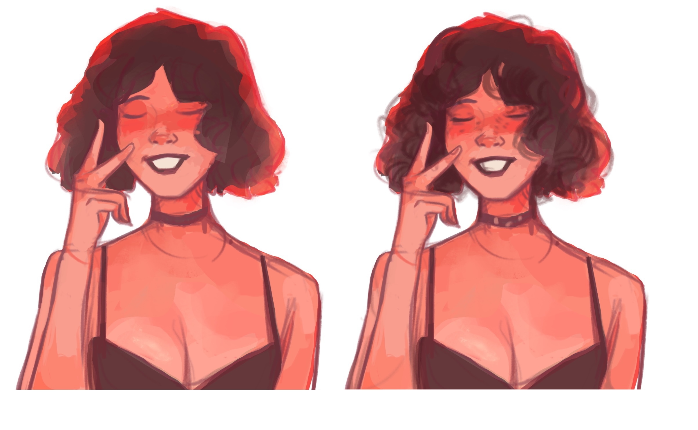 Whenever i draw details over, like hair strands or freckles, i lower the opacity to like 60% and then merge it.