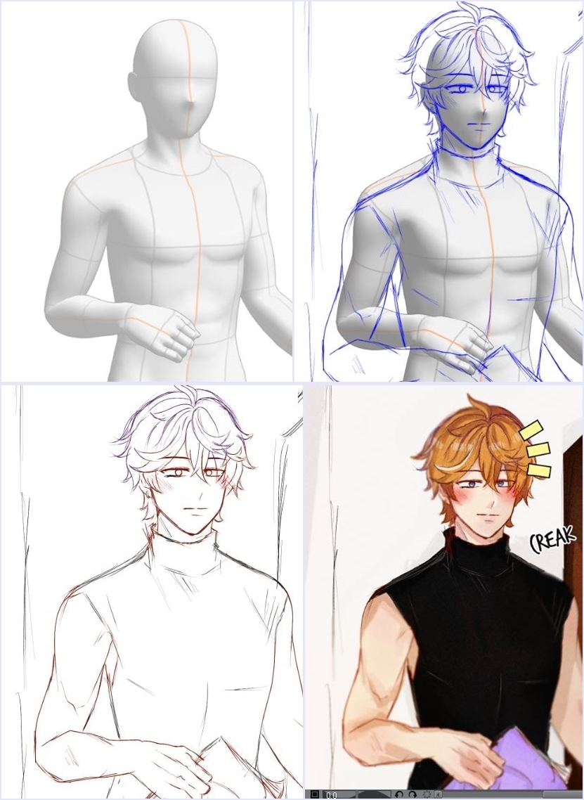 4) use 3d model pose apps or assets (this helps a lot saving time in webtoon creation)