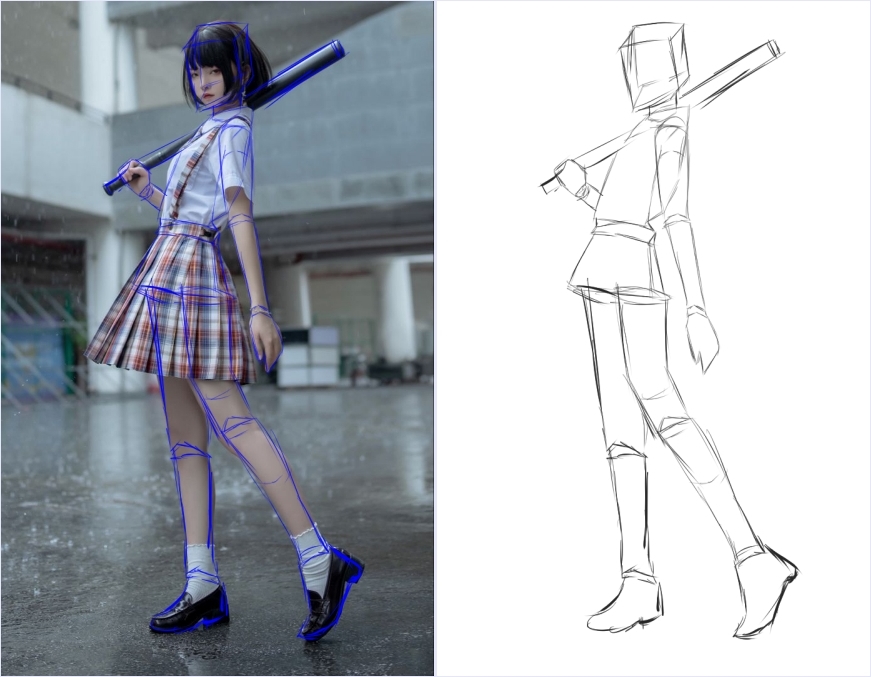 for example, this is how i do it. i trace the photo to get the base of the pose rather than created it myself. pls note i dont use shape that much, because my style of drawing doesnt require me to use this.