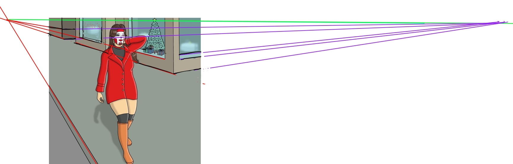 The current version. Its vanishing point is around the character's waist height, meaning the camera is positioned at waist level—this feels somewhat unintuitive. (Though if the work is for children, it's actually a good choice, viewing from a child's perspective.)