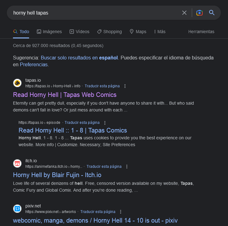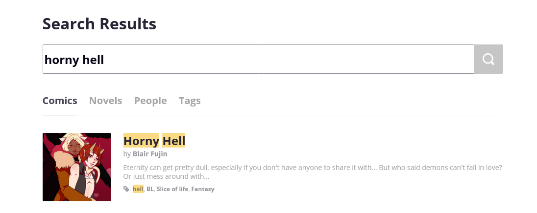 Even when I type "Horny Hell" in the search bar of Tapas your series DOES appear