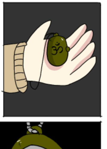 She slammed the green stone into her forehead, and transformed. She grew taller, her skin grew paler, her pupils became slits, and her red hair became darker. Her coat changed, so it was black leather with green patterns, and her boots gained high heels and wings on the ankles.