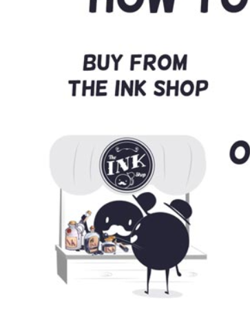 here we see TWO figures, but only one of them has a mustache. he is shown selling ink to another figure.
