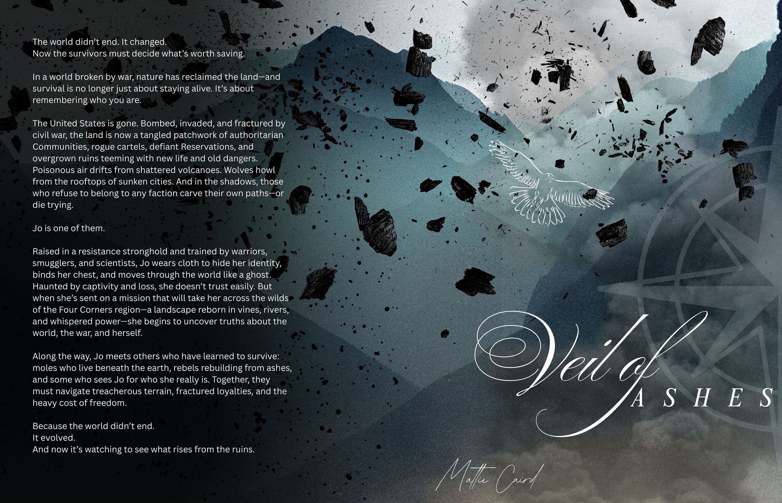 Veil of Ashes follows Jo, a young survivor navigating a fractured world after the fall. Communities hoard power and knowledge, while rebels, smugglers, and forgotten settlements fight to endure beyond their control. The story focuses on survival skills, mentorship, and the slow rebuilding of humanity—one choice, one map, one connection at a time. It’s grounded, character-driven, and atmospheric, with an emphasis on resilience over heroics.