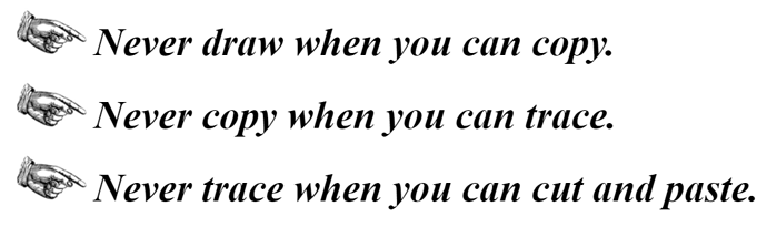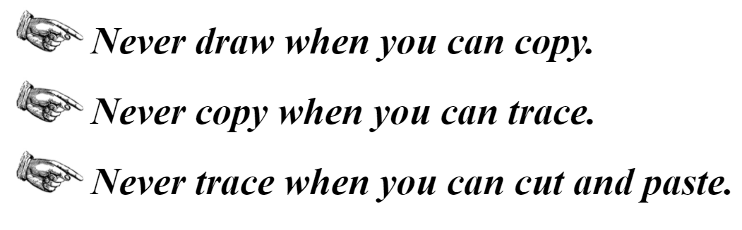 "Never draw anything you can copy, never copy anything you can trace, never trace anything you can cut out and paste up."